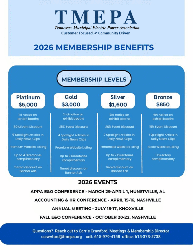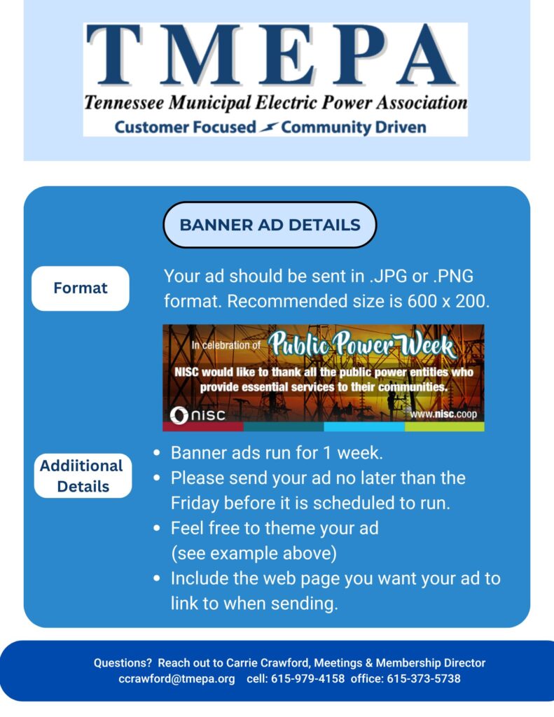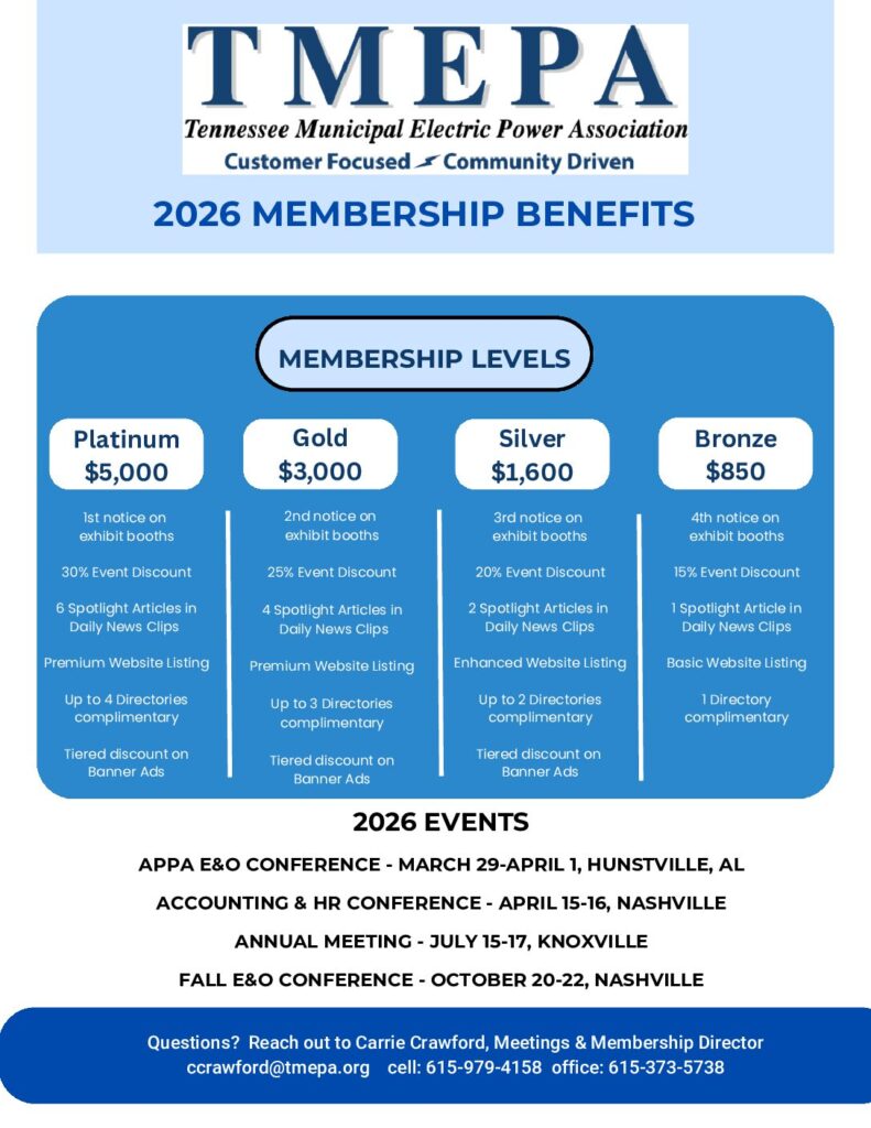 We are a membership association of 60 municipal and county electric power providers that serve over 2.4 million homes and businesses across Tennessee.